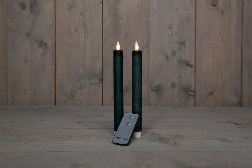 Anna’s Collection 2st. LED Rustiek wax Diner kaars Antiek groen H23 cm