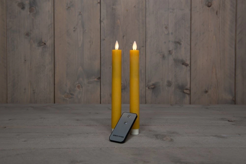 Anna’s Collection 2st. LED Rustiek wax Diner kaars Oker H23 cm