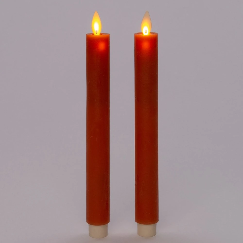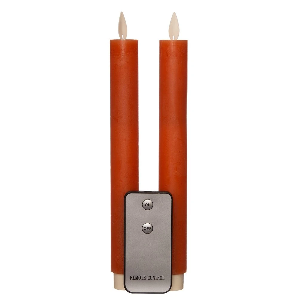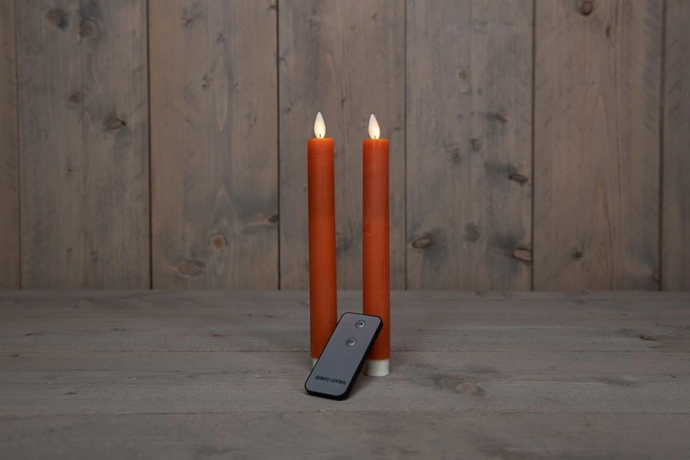 Anna’s Collection 2st. LED Rustiek wax Diner kaars Oranje H23 cm