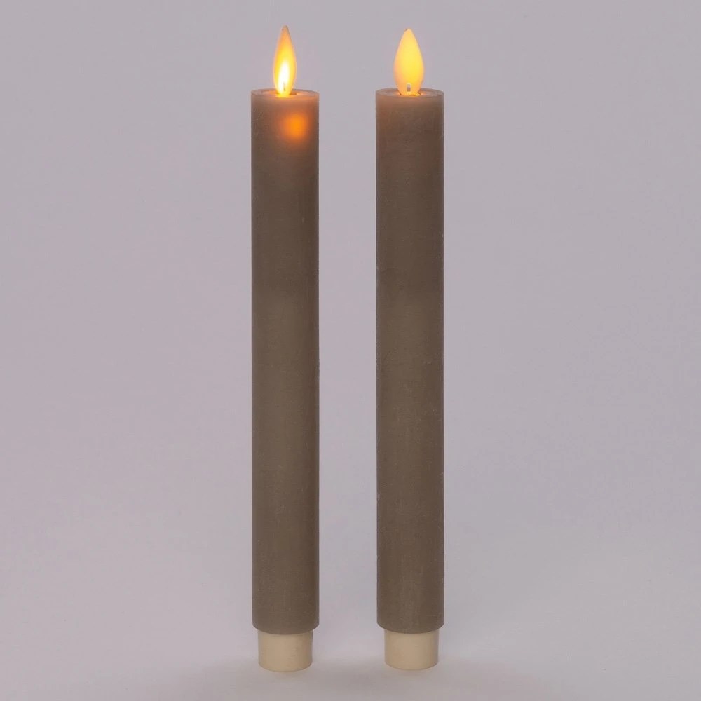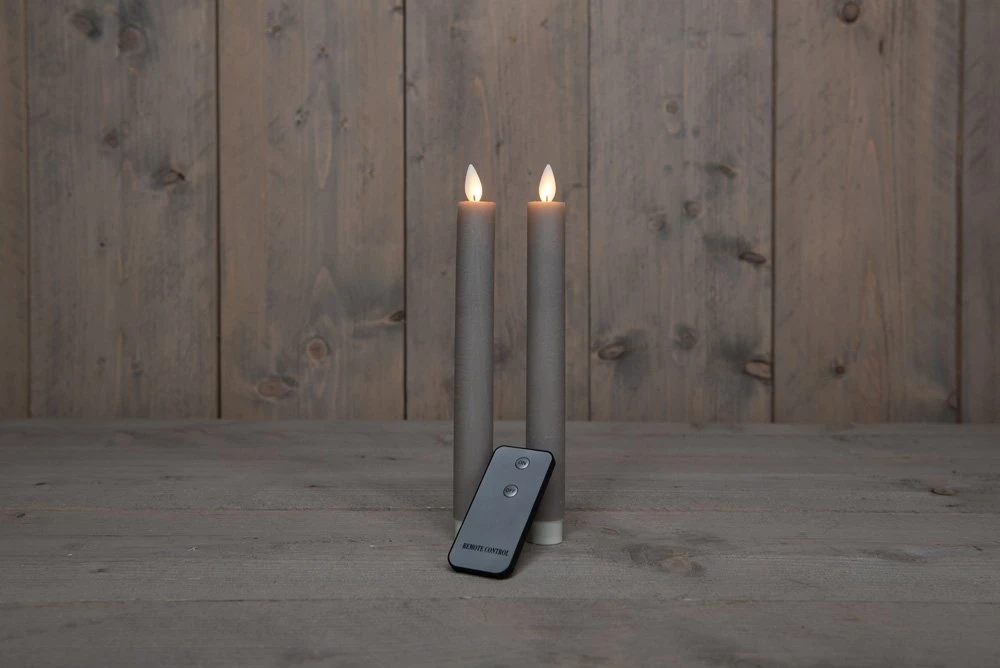 Anna’s Collection 2st. LED Rustiek wax Diner kaars Taupe H23 cm