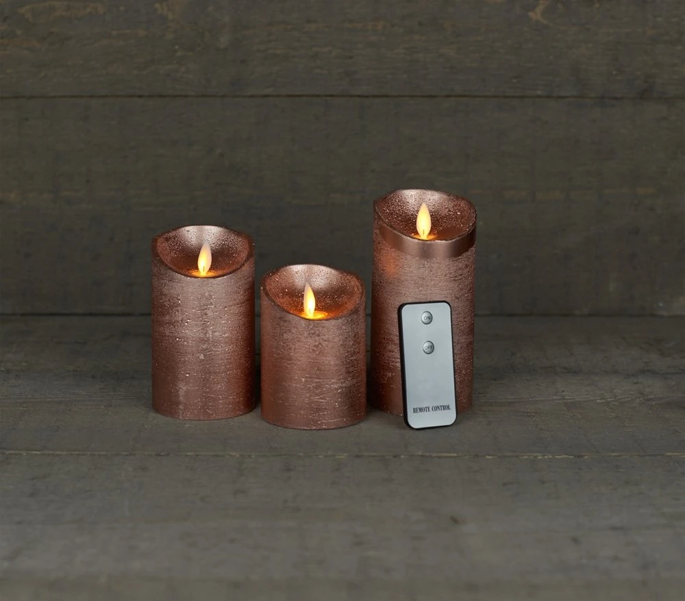 Anna’s Collection 3st. LED Rustiek wax stompkaars Koper – Ø 7,5 x H 10/12,5/15 cm